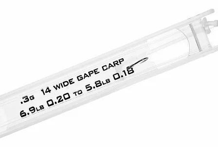 Each rig is tied to sensible line from 0.18mm (5.8lb) to 0.23mm (8.9lb) depending on rig size. They also feature hooklengths joined loop-to-loop from 0.16mm (4.9lb) to 0.20mm (6.9lb) and Wide Gape Carp or Power Carp Riggers hooks from 16s to 12s.