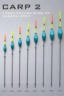 A wide range of sizes from 0.1g right up to 1g allows the Carp 2 to cope with anything from deep margin swims to large, wind-affected stillwaters.